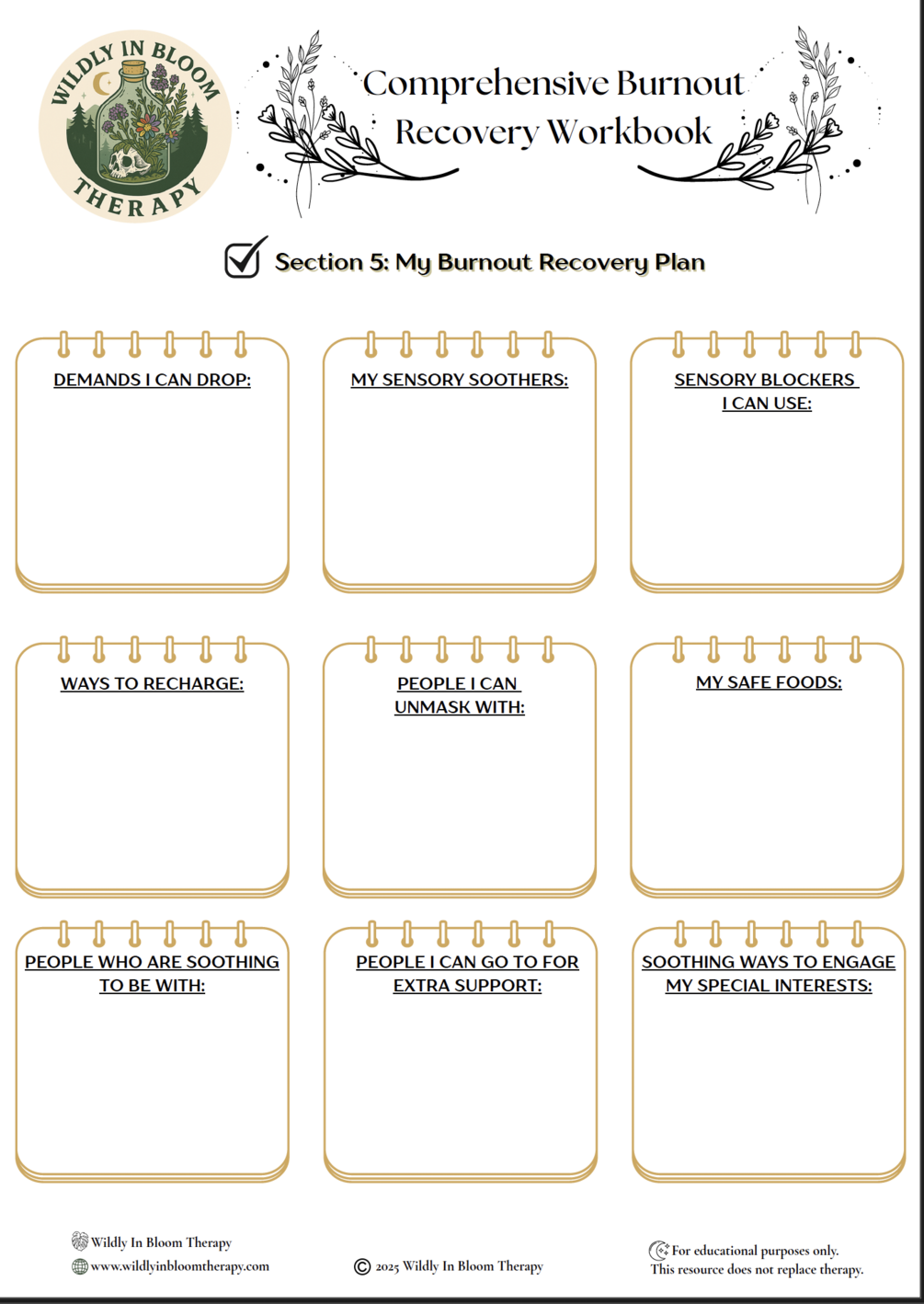 👉 A bundle of affirming, trauma-informed worksheets to help you prevent, notice, and recover from burnout — designed by and for neurodivergent brains.